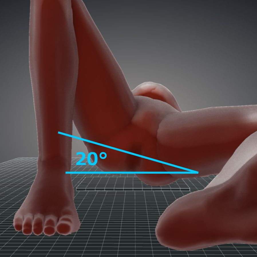 カセッテから遠い側(検側)の下肢は膝を立て、軽度外転する。