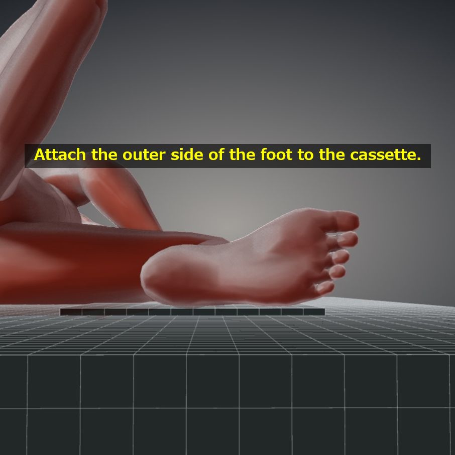 2. Keep the calcaneus parallel to the cassette (raise the heel).