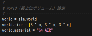 # World(最上位ボリューム)設定
