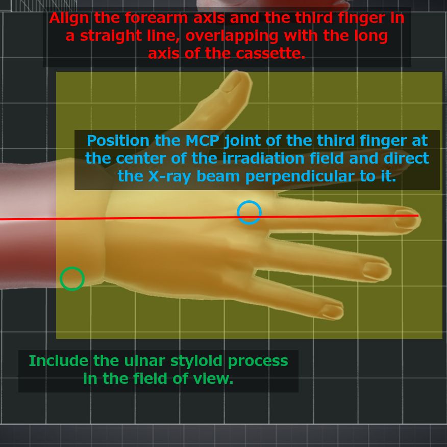 CR : Perpendicular incidence towards the MCP joint of the third finger.